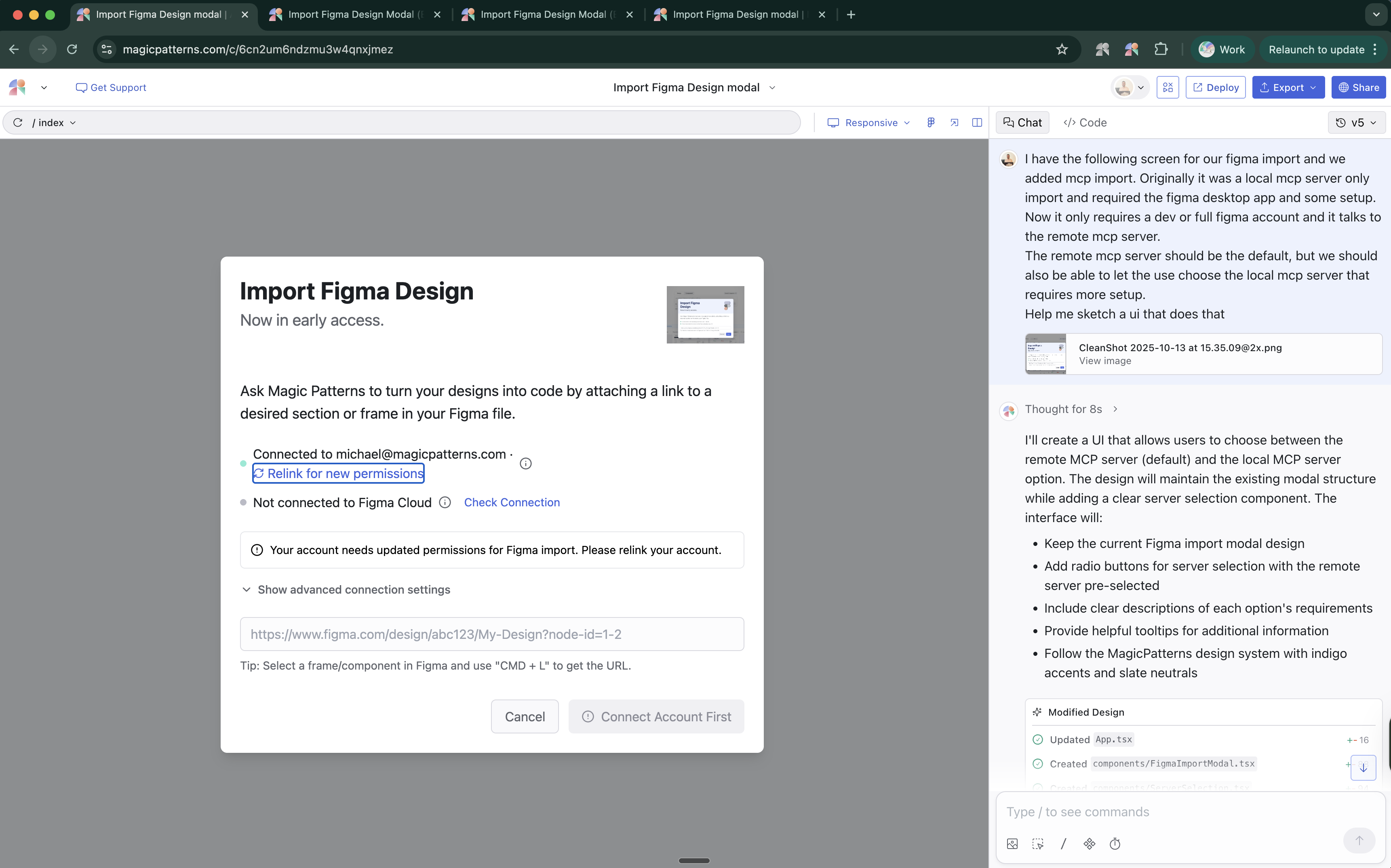 A month ago we released the Figma MCP powered imports, it was using the local Figma MCP in a clever way to more accurately bring Figma Components into Magic Patterns.